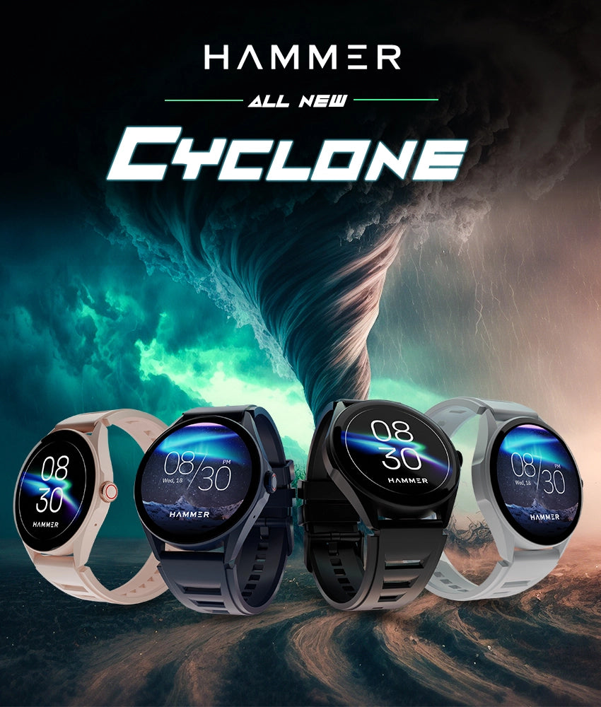 Hammer Cyclone Round Dial Bluetooth Smartwatch & KO Mini Bluetooth Earbuds (Combo)
