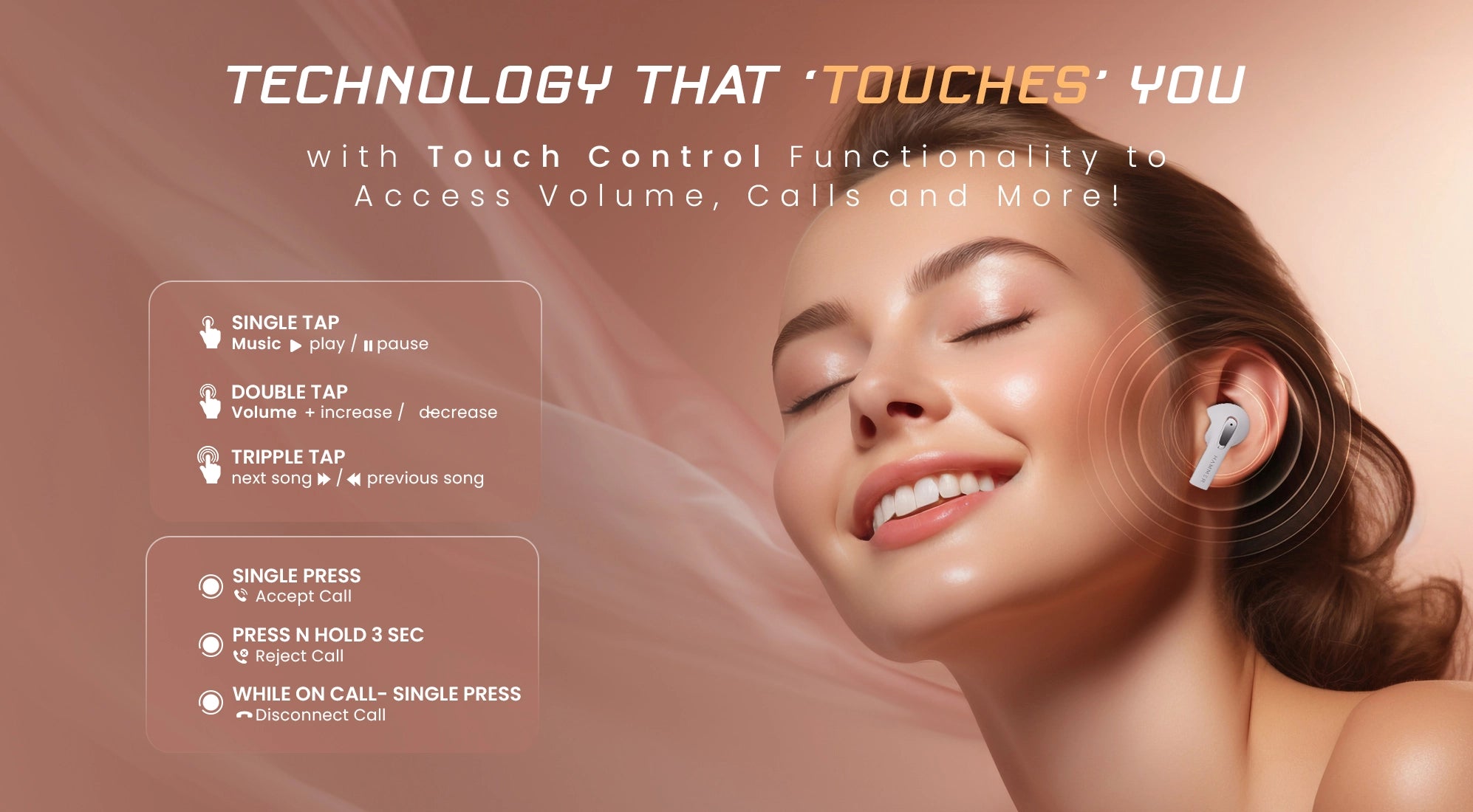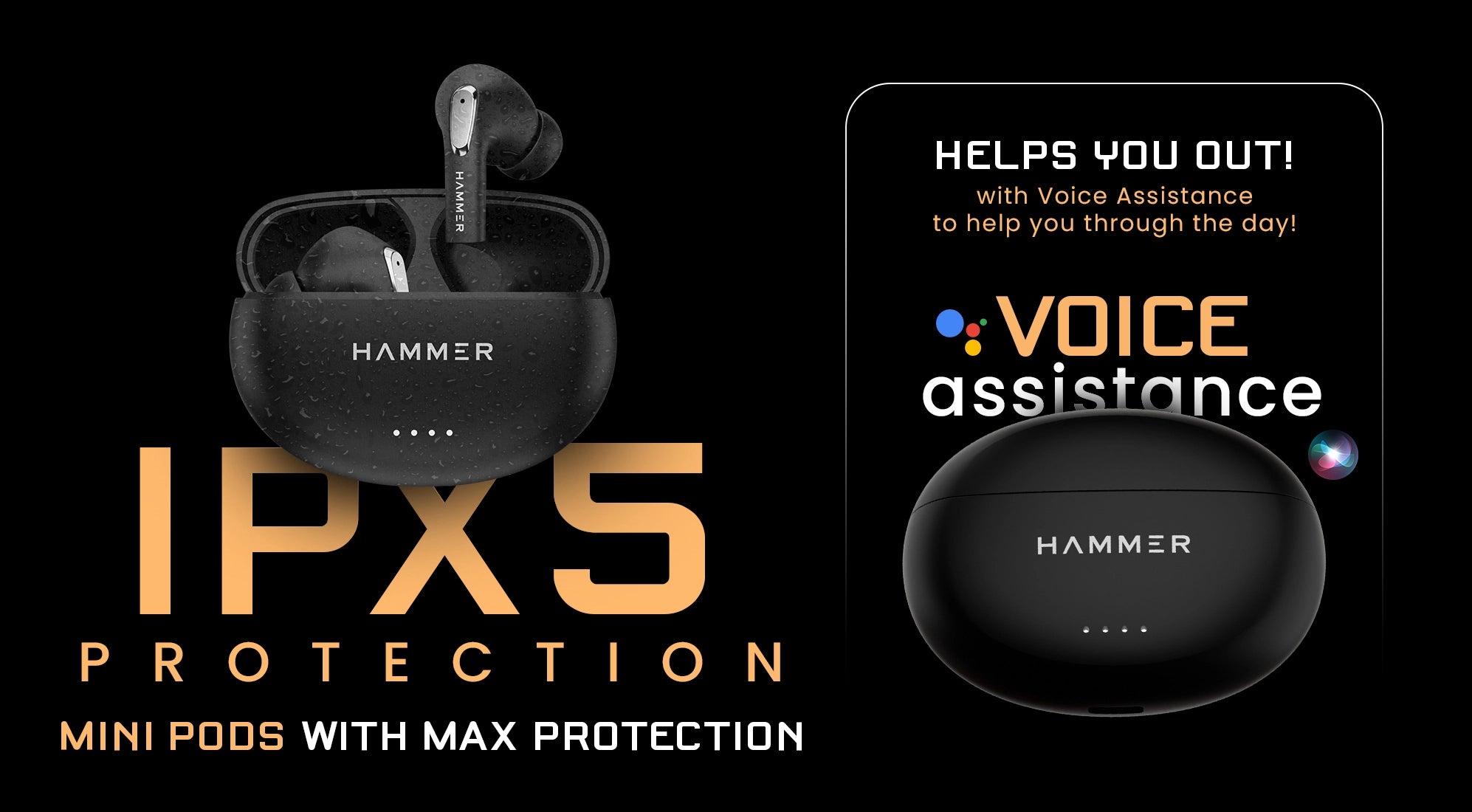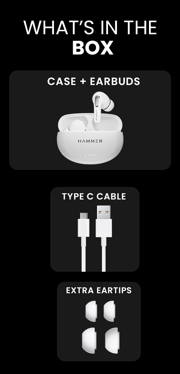 (Refurbished) Hammer Mini Pods TWS Bluetooth Earbuds with Bluetooth v5.3 and Smart Touch Controls