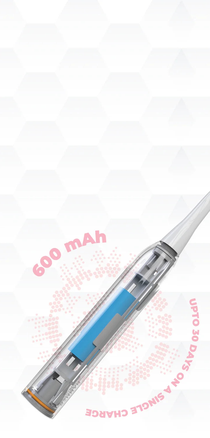 The new Ultra flow electric toothbrush gives you 30 days of uninterrupted oral cleaning on a single charge. So, drop off the poor battery worries and switch to smarter brushing.
