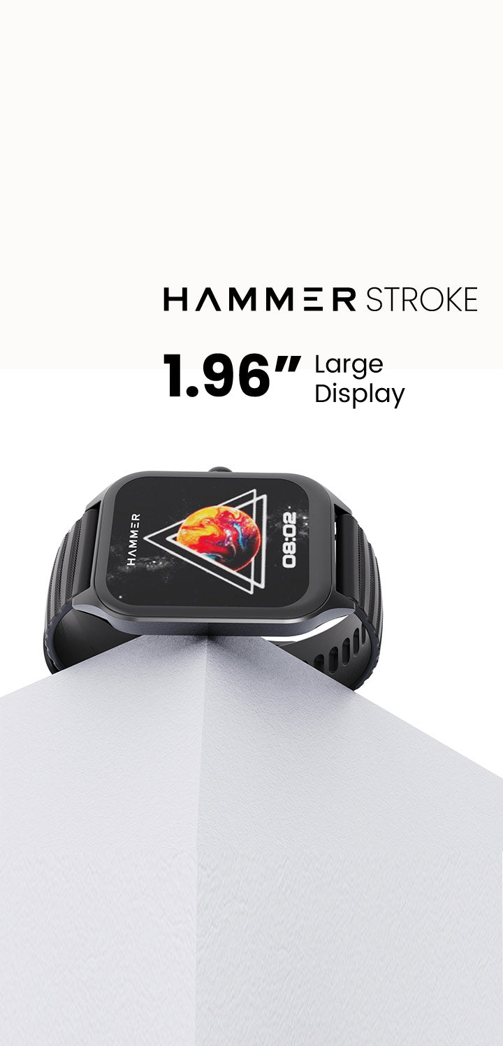 Hammer Stroke offers the largest 1.96" TFT Display covering every edge possible and providing a crystal-clear resolution of 240*282 pixels with 500 nits brightness that