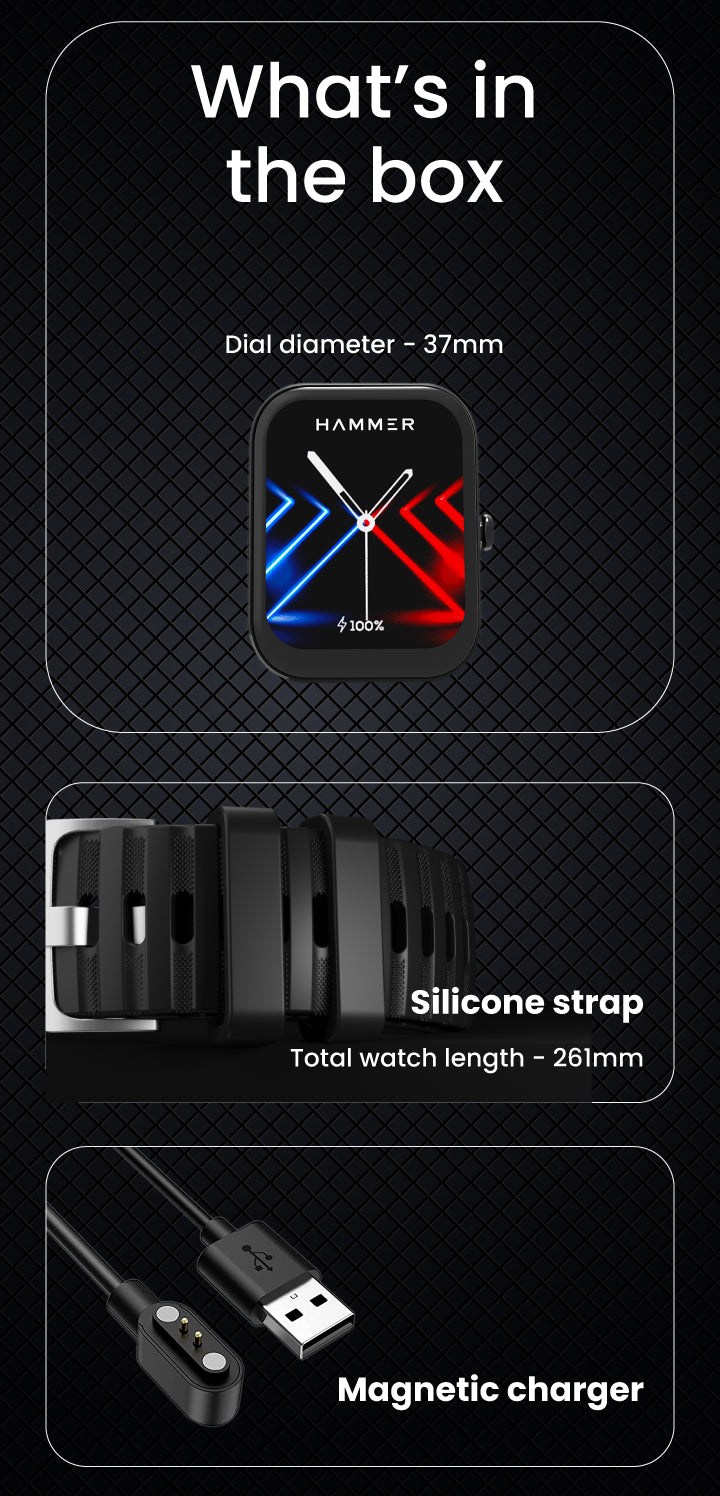 Live your dreams without worrying about running out of power. The Hammer Stroke smartwatch has a powerful battery that will keep you going for up to 5 days without Bluetooth calling and up to 2 days with it. The powerful magnetic charging guarantees a quick and easy recharge anytime it is required.