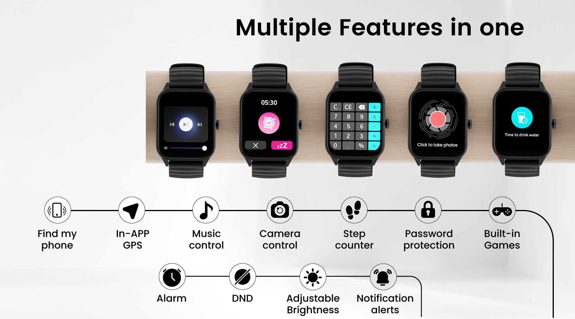 Display, 100+ sports modes, 100+ customized watch faces, built-in games, Strong
