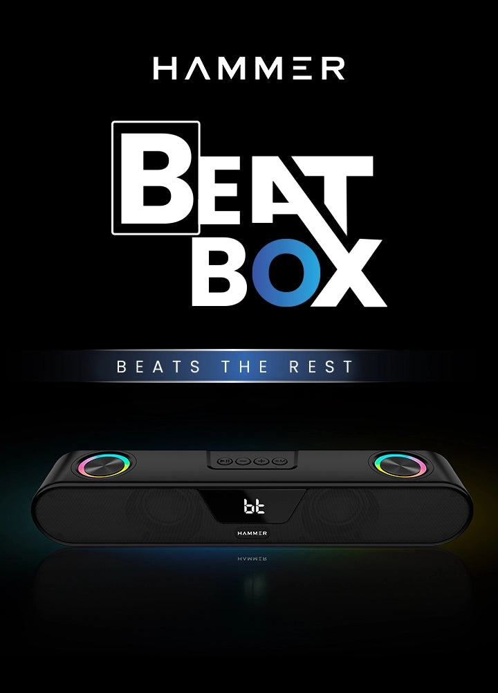 Hammer BeatBox Bluetooth soundbar for tv, mobile and laptops comes power-packed with a 24-watt RMS Speaker.