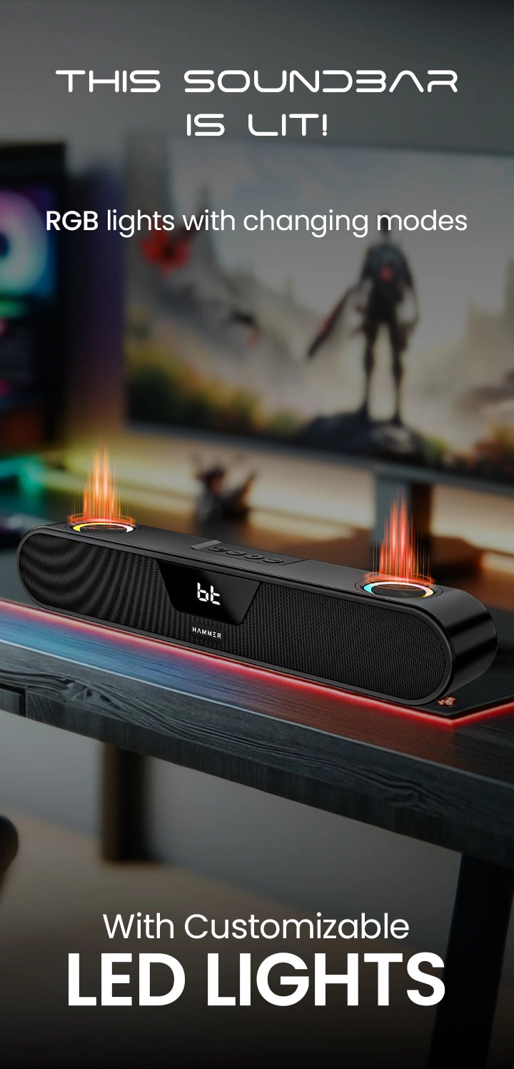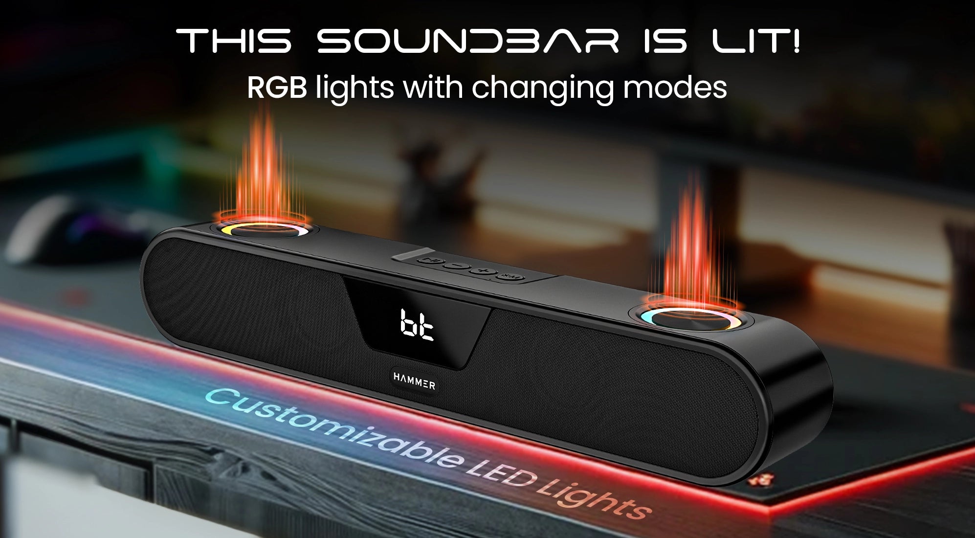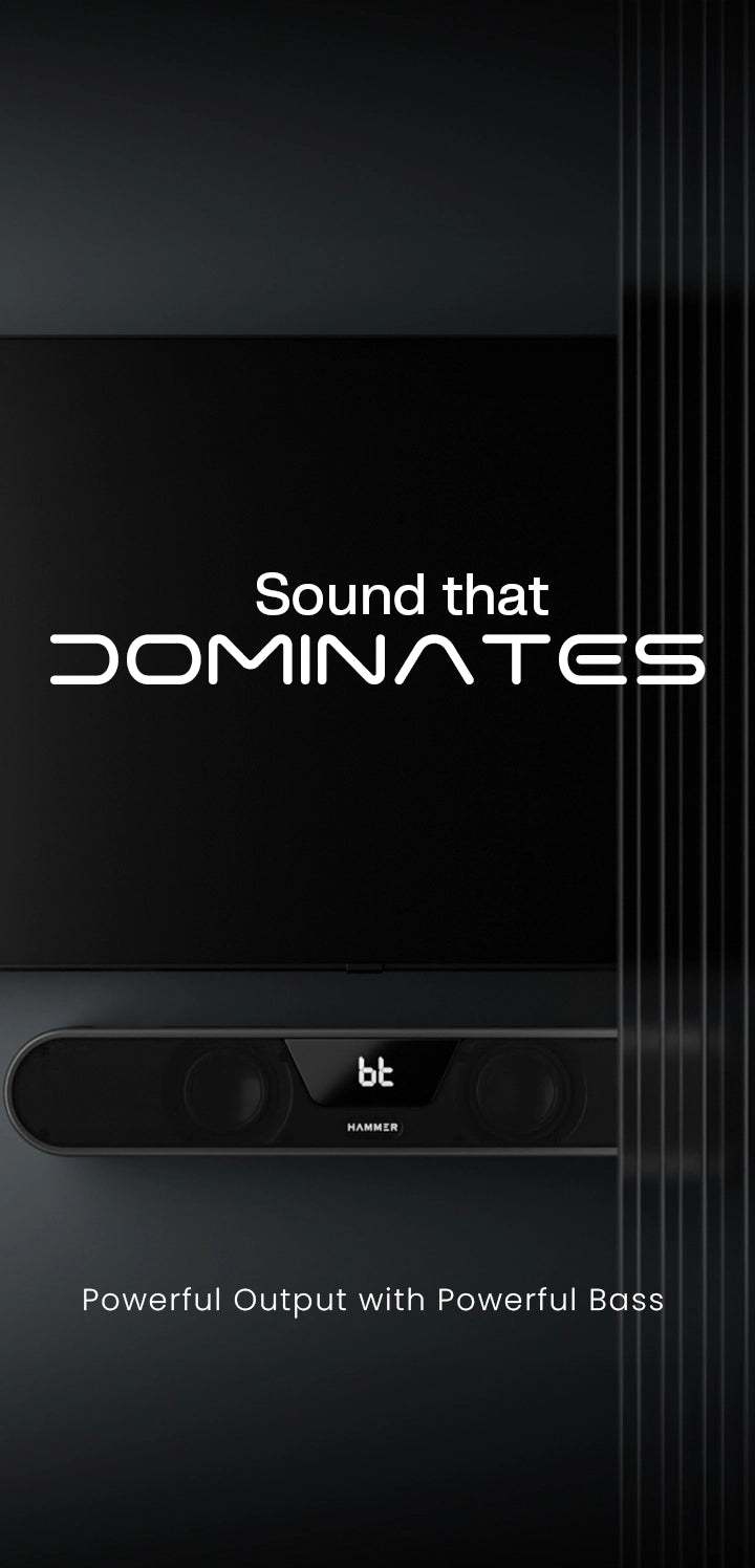 This Hammer BT Sound bar for tv comes with BT5.3 version and two 52 mm Sound Drivers; live the sound with BeatBox.