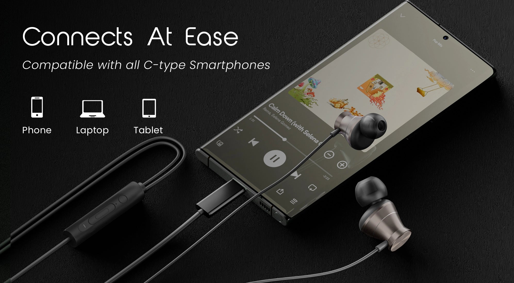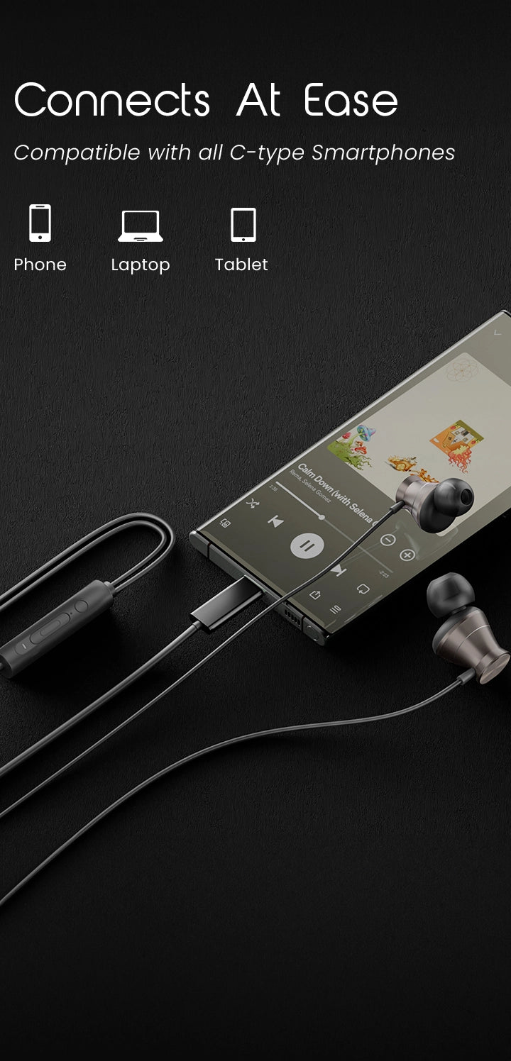 With 13mm powerful bass driver, these Type-C earphones provide you with an impressive and loud sound quality.