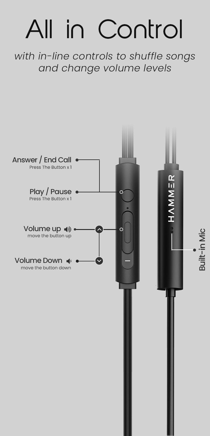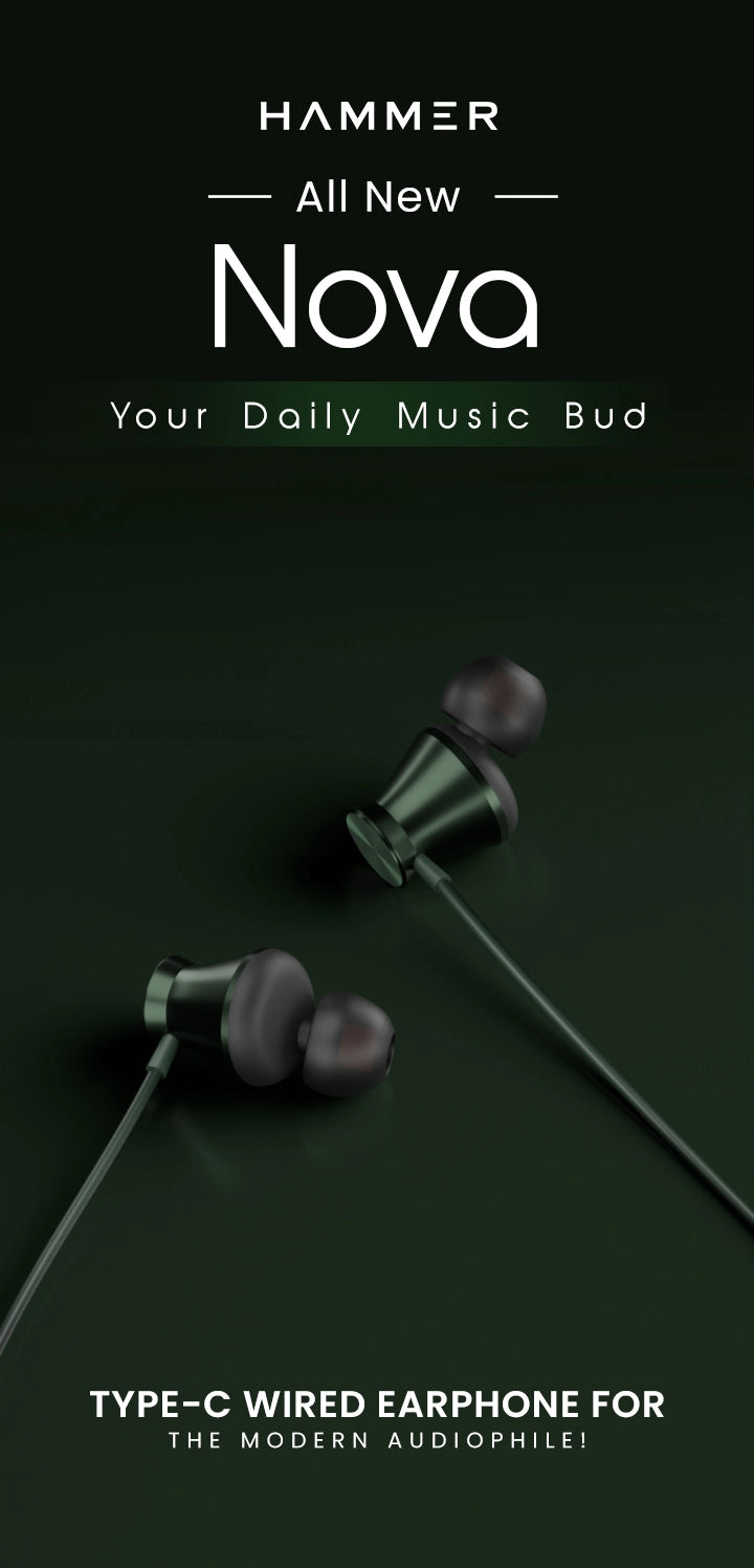 Hammer Nova Universal Type-C Earphones with Metallic Built Earbuds, Powerful Bass & Lightweight