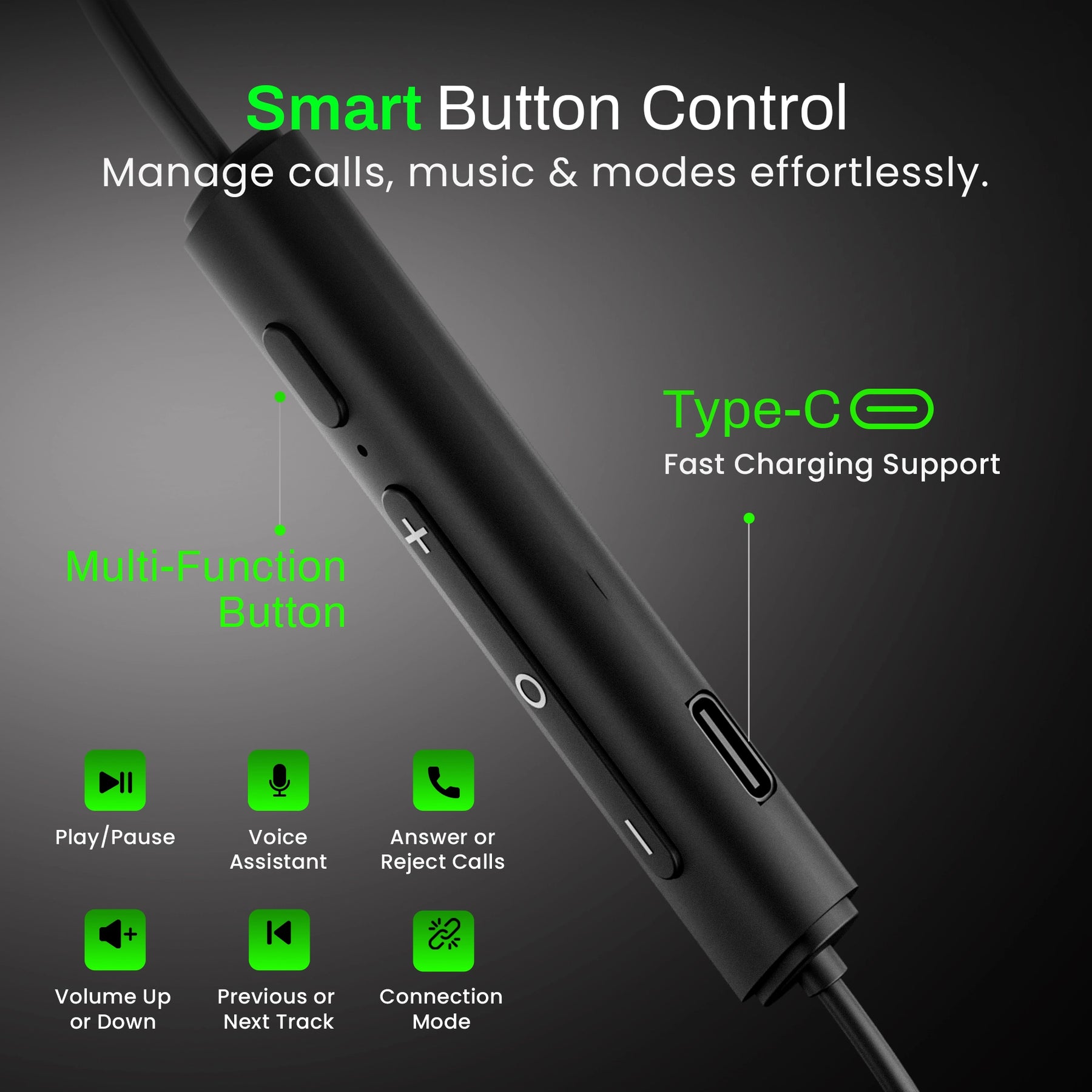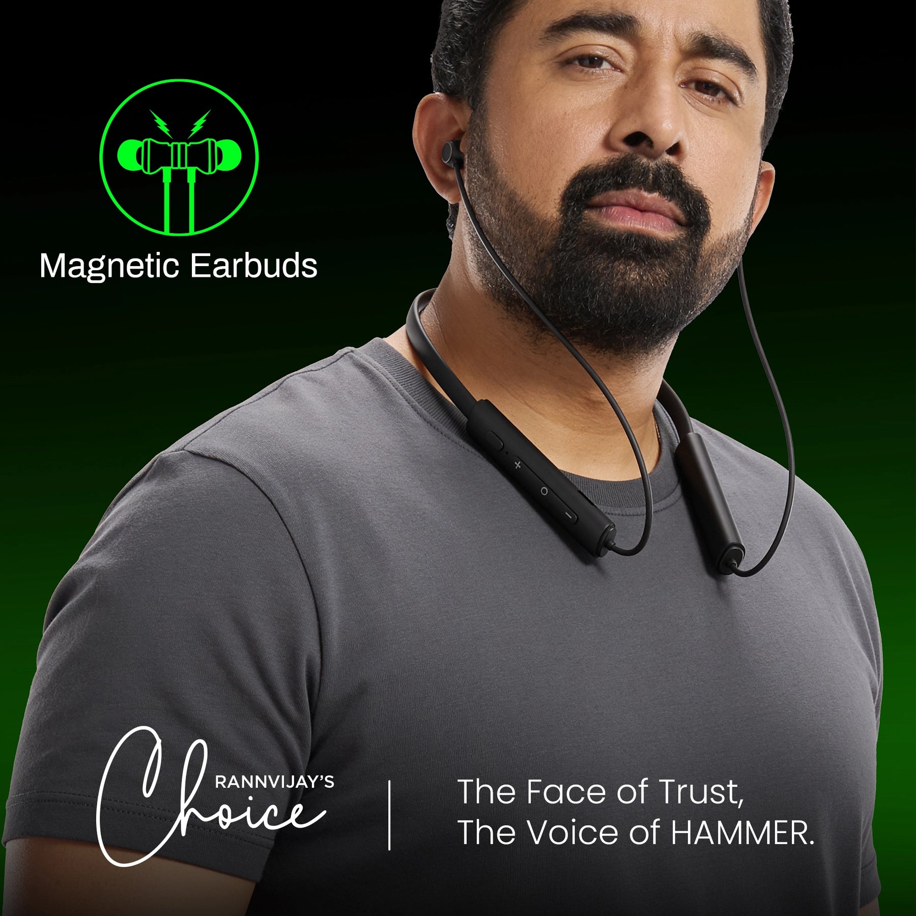HAMMER Splendor 2 Bluetooth Neckband V6.0 & ENC with 50H Playtime (Black)